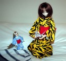 おやっ、寝巻きの上に、折鶴があります?! |